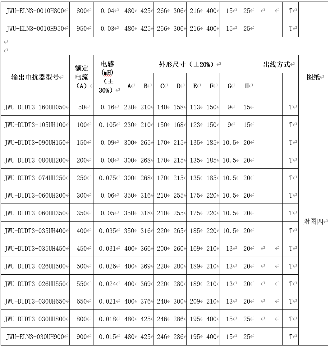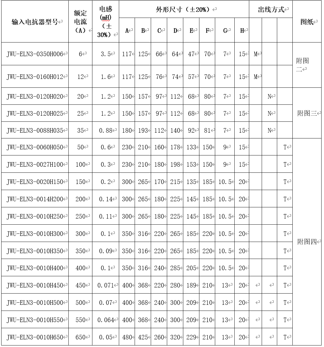 三、??? 三相交流電抗器技術(shù)規(guī)格及選型表